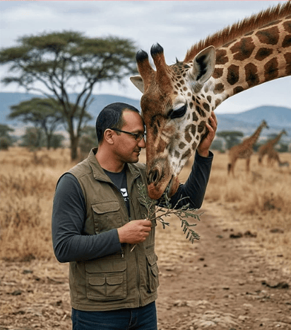 Turns your photo into a cinematic, documentary-style scene where you share a calm, hyper-real moment with an animal in its natural habitat. Trust, realism, and that weirdly beautiful “human meets wilderness” energy.